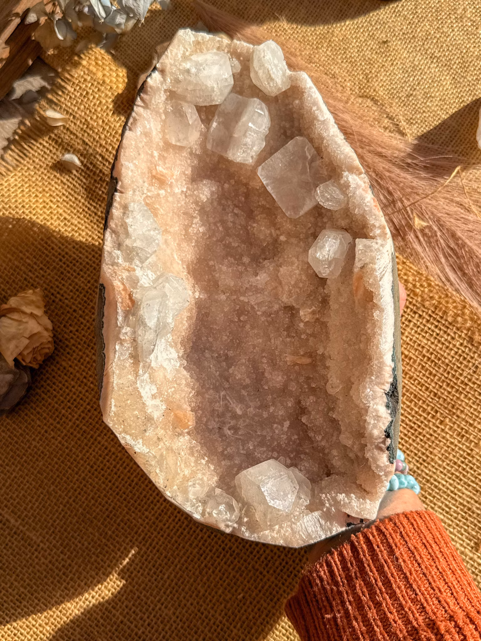 Apofyllit öppnar medvetenhet om vår gudomliga förbindelse med jorden, änglariket och sanningens andliga riken, medan stillbit ger djupgående healing till de övre chakran, dekonstruerar väggarna vi har byggt för att skydda våra hjärtan från att gå sönder. Tillsammans öppnar den här fantastiska mineralen oss för att uppleva det djupare känsla för kärlek även ökar medvetenhet och uppfattning och en återkoppling med vår inre glädje! Vid healing tros denna kristallkombination lugna känslor, lindra sorg, förbättra mental klarhet, välstånd, drömmar.