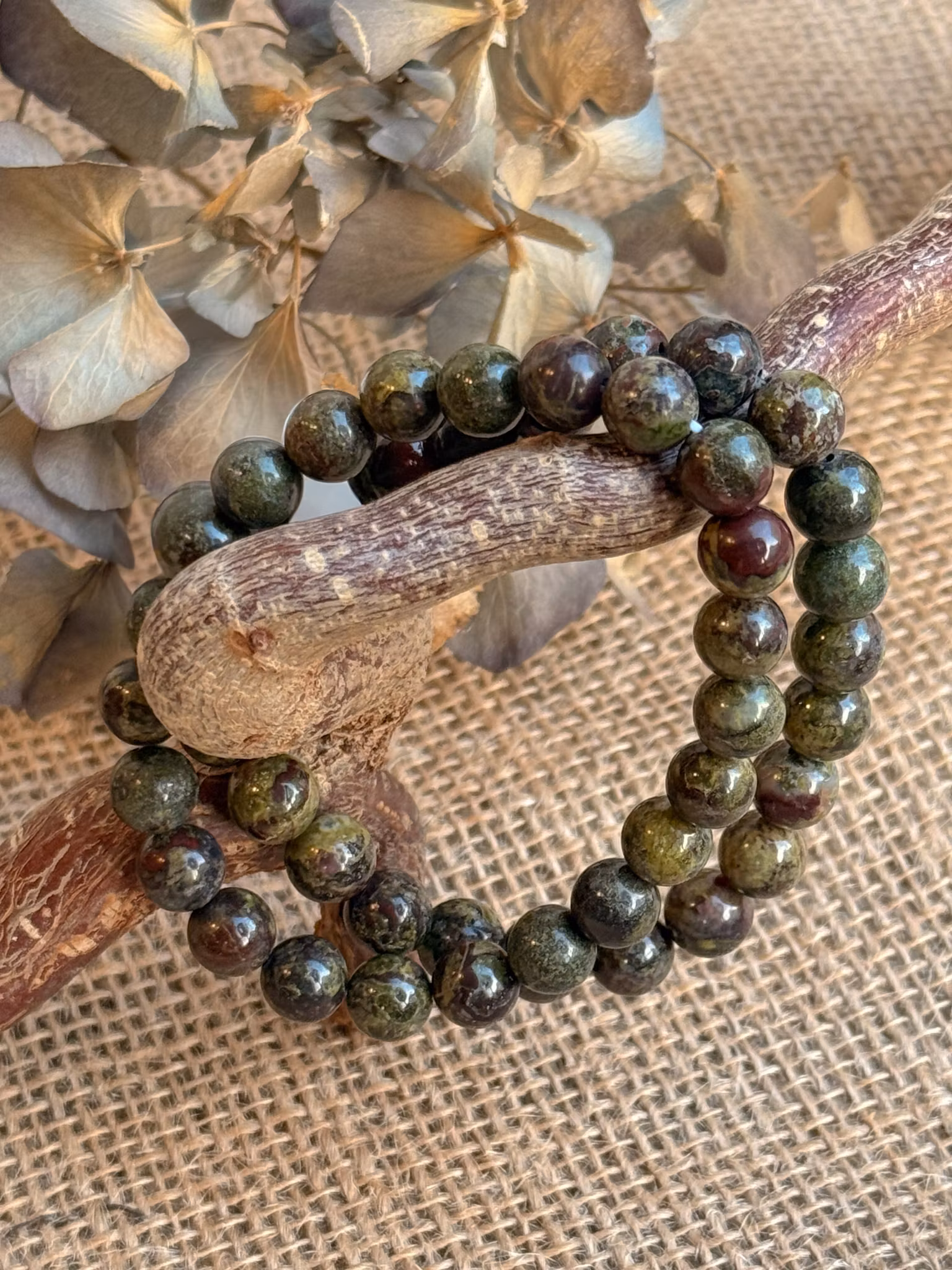 Drakblodsjaspis, även kallad Draksten eller Drakblodsten, är en kristall som sägs födas ur eld och bära en enorm mängd energi. Dess gröna kropp med röda inslag liknar blodsdroppar på drakens hud – en symbol för kraft, liv och passion.