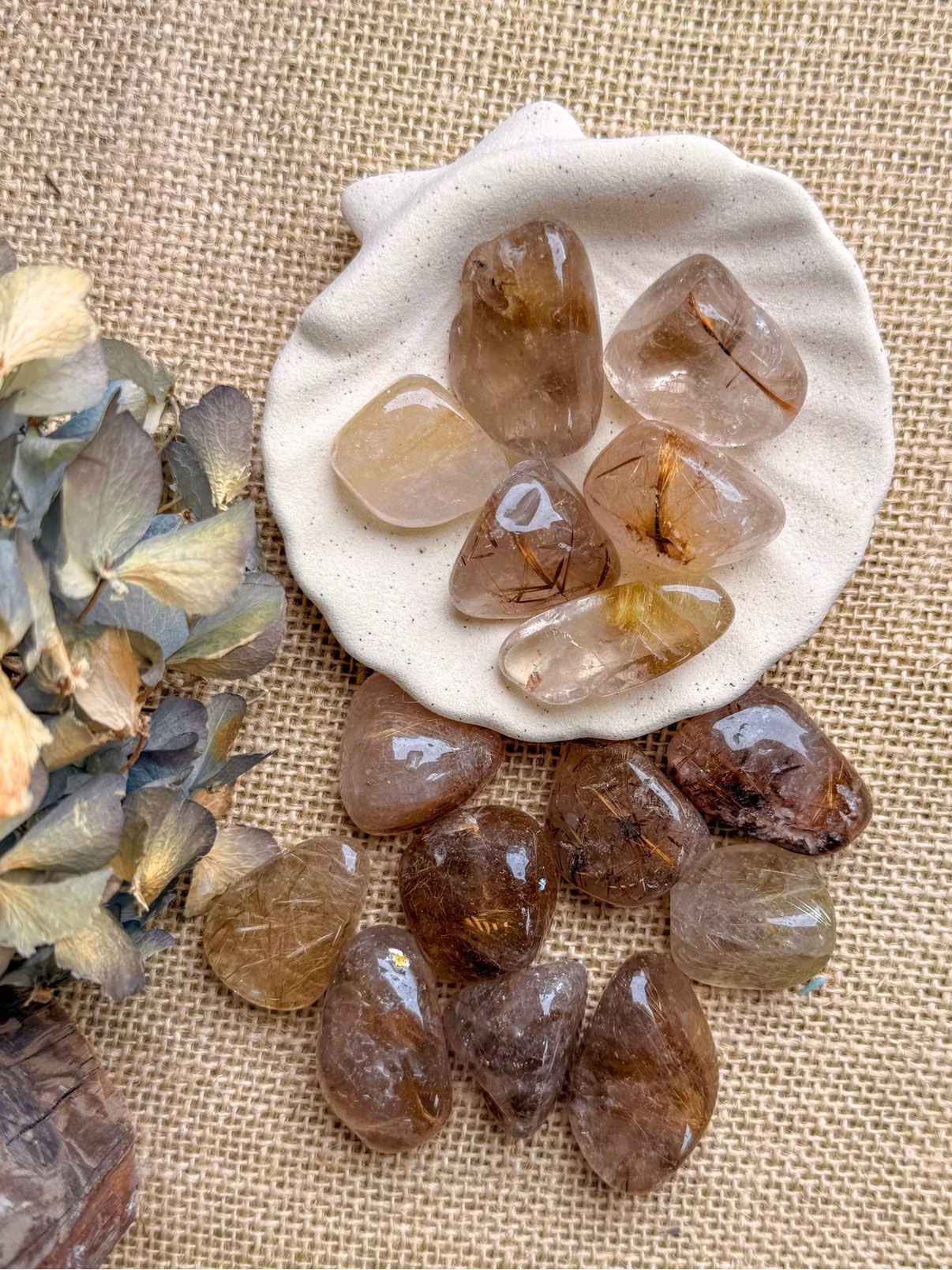 Guld rutilkvarts används ofta för manifestation. Den förstärker intentioner med en intensiv kraft, nästan som elektricitet som vibrerar genom varje tråd. Den sägs också stötta vid emotionell läkning, klarhet i relationer och när du vill se bortom ytan – in i det som verkligen är.