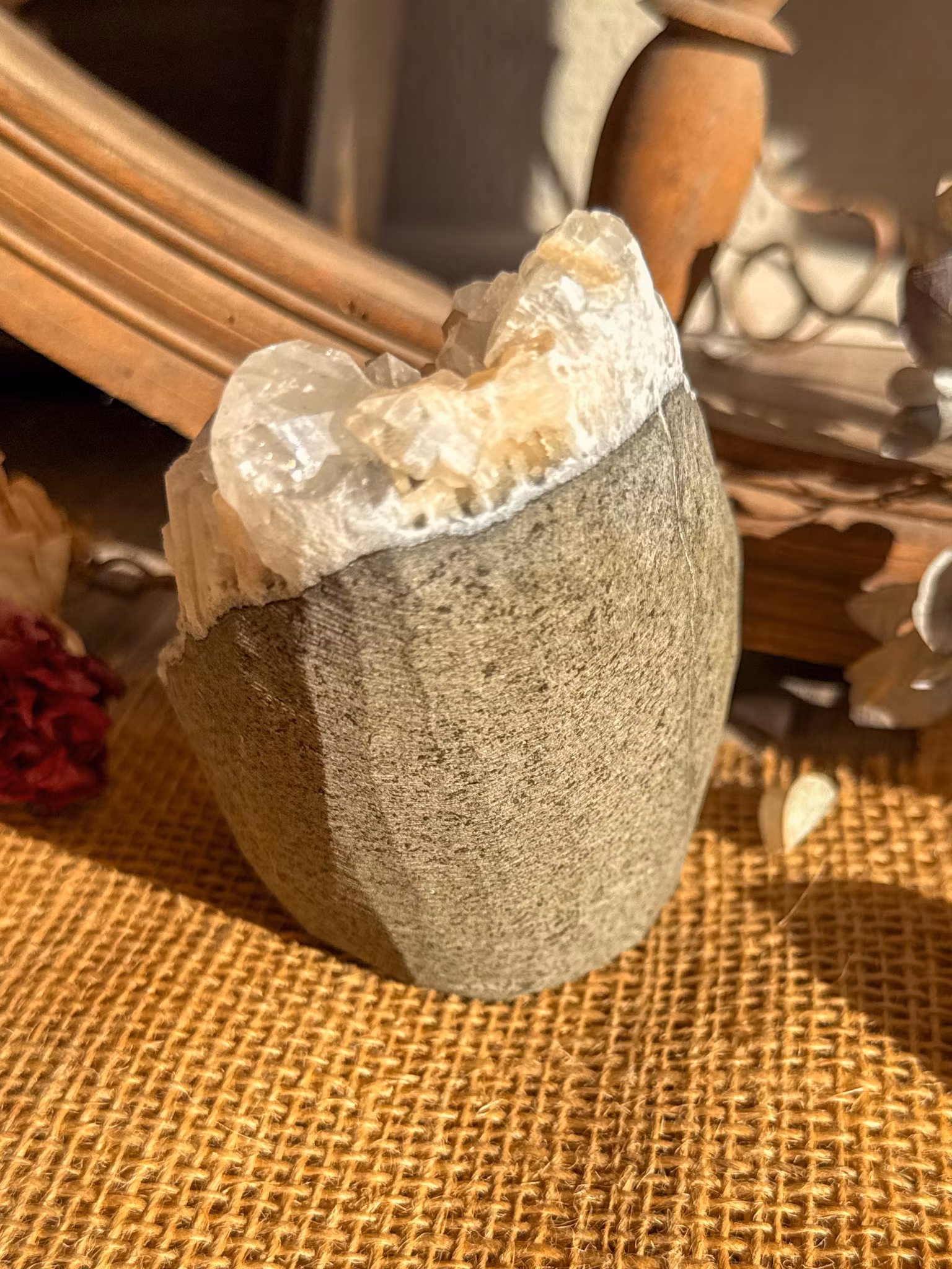 Det här är en perfekt kristall för dig som vill skapa ett lugnt space för meditation, energiarbete eller inre vila. Den passar också vackert i sovrum, behandlingsrum eller på altaret där du önskar förankra närvaro, stillhet och klarhet.