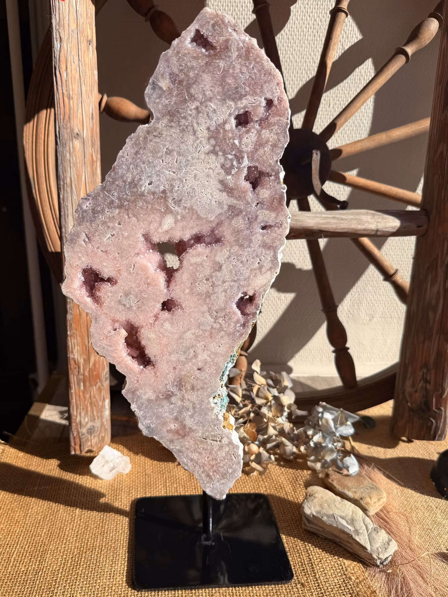 Rosa ametist känns som en mjuk hand över hjärtat. En kristall som bär en stillsam rosa ton tack vare små mängder järn och ibland inslag av mangan. Det är det so