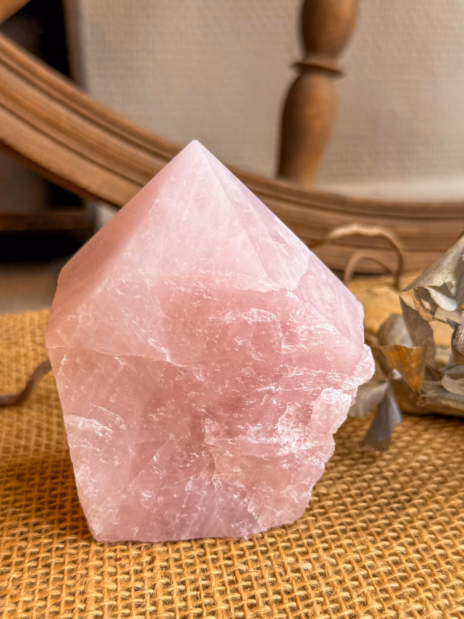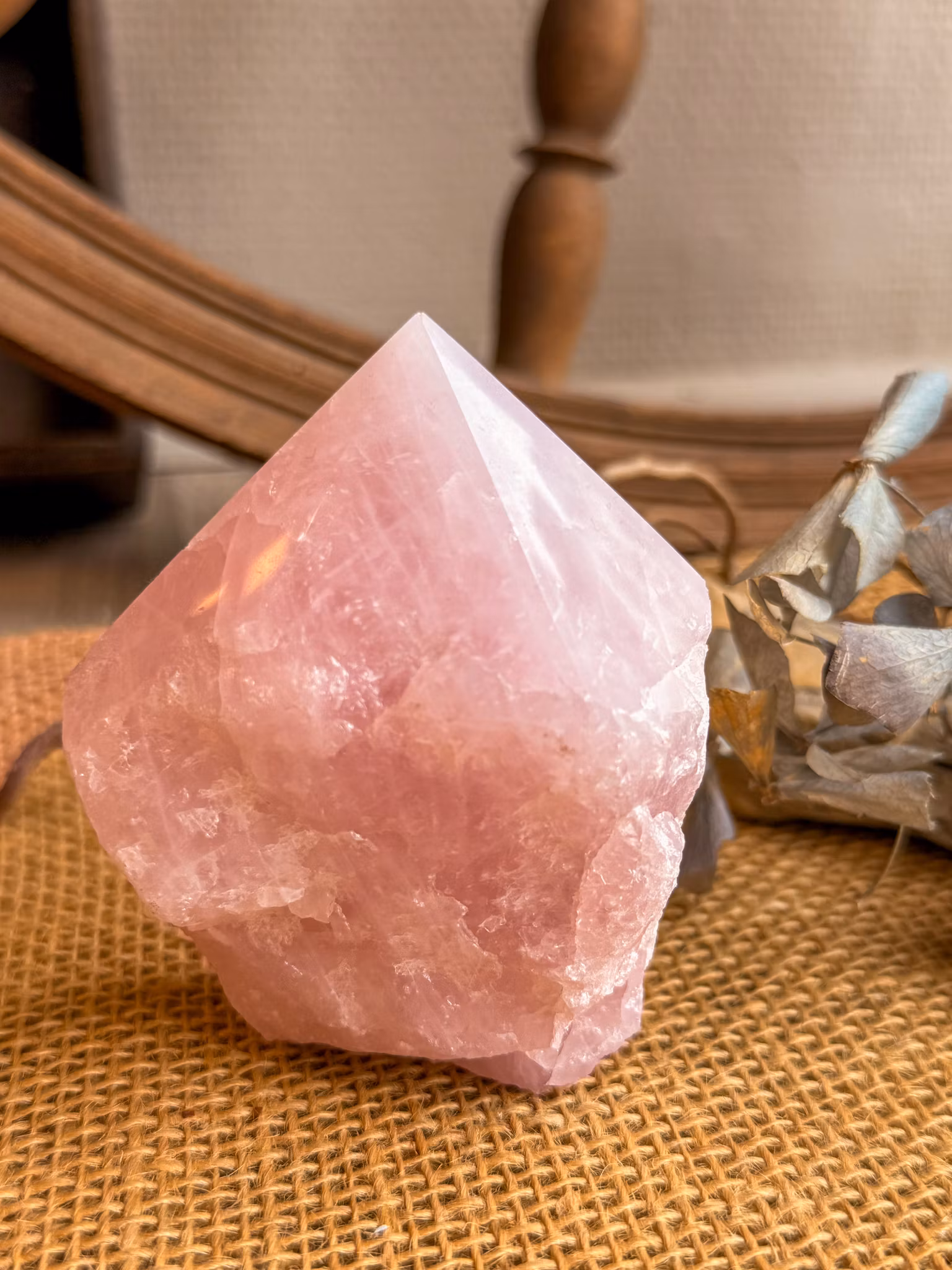 Rosenkvarts är en form av kvarts med sitt karakteristiska mjuka, rosa skimmer. Kristallen bildas främst i Brasilien men även Madagaskar och Mozambique och dess koppling till hjärtchakrat gör den till en självklar följeslagare i både vardag och ceremoni.