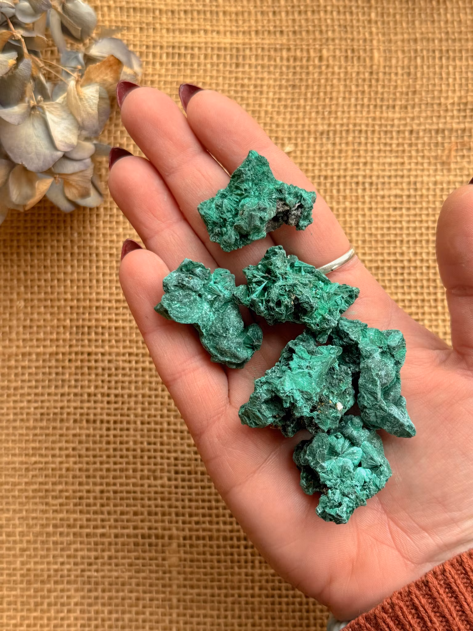 Silkesmalakit bär samma grundkraft som malakit alltid haft: mod, skydd och känslomässig stabilitet. Men energin är mjukare, mer följsam och lättare att bära nära kroppen varje dag.