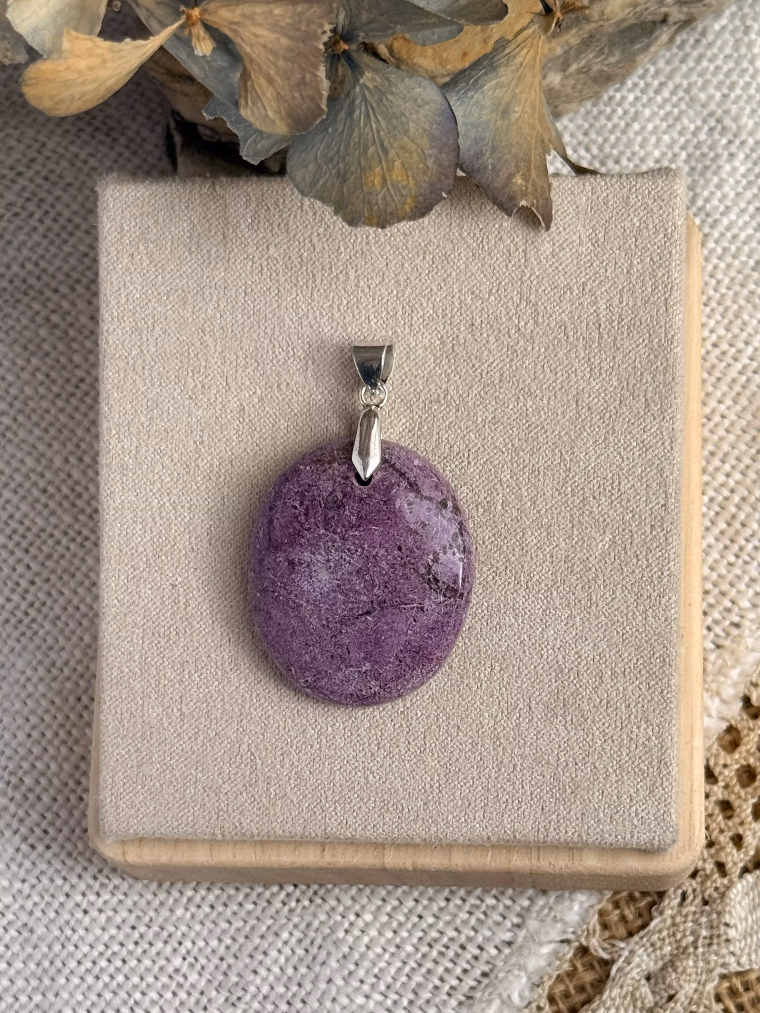 Det är en naturlig kombination av två mineraler där den lavendelfärgade stichtiten växer tillsammans med grön serpentin. Färgerna möts i ett levande mönster där det mjuka och det jordnära får finnas sida vid sida.
