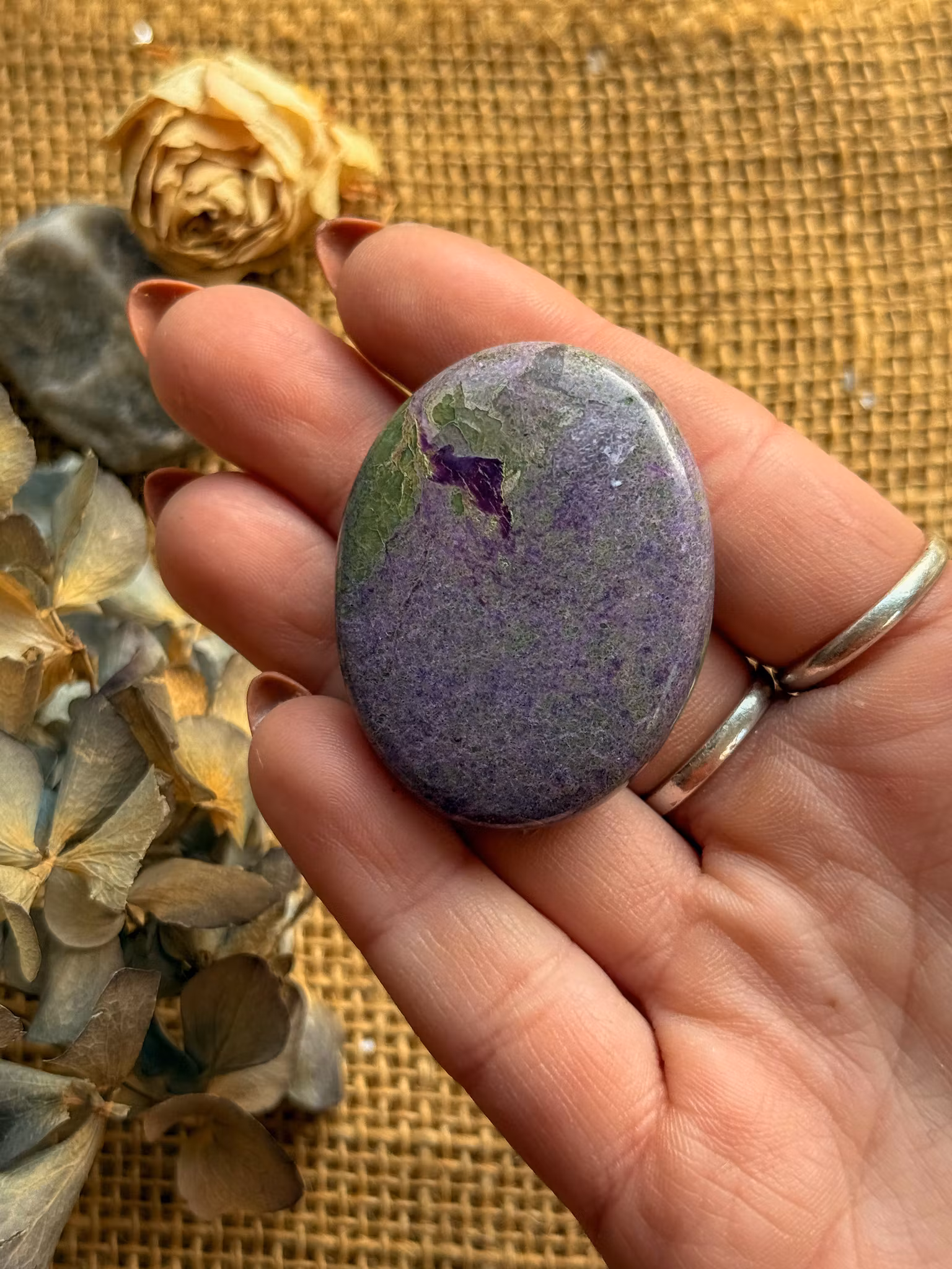Stichtiten mjukar upp hjärtat, väcker kärlek och stillar tankarna, medan Serpentinen håller dig grundad och skyddad. Tillsammans hjälper de dig möta rädslor med mod, släppa oro och känna tillit till livet igen.