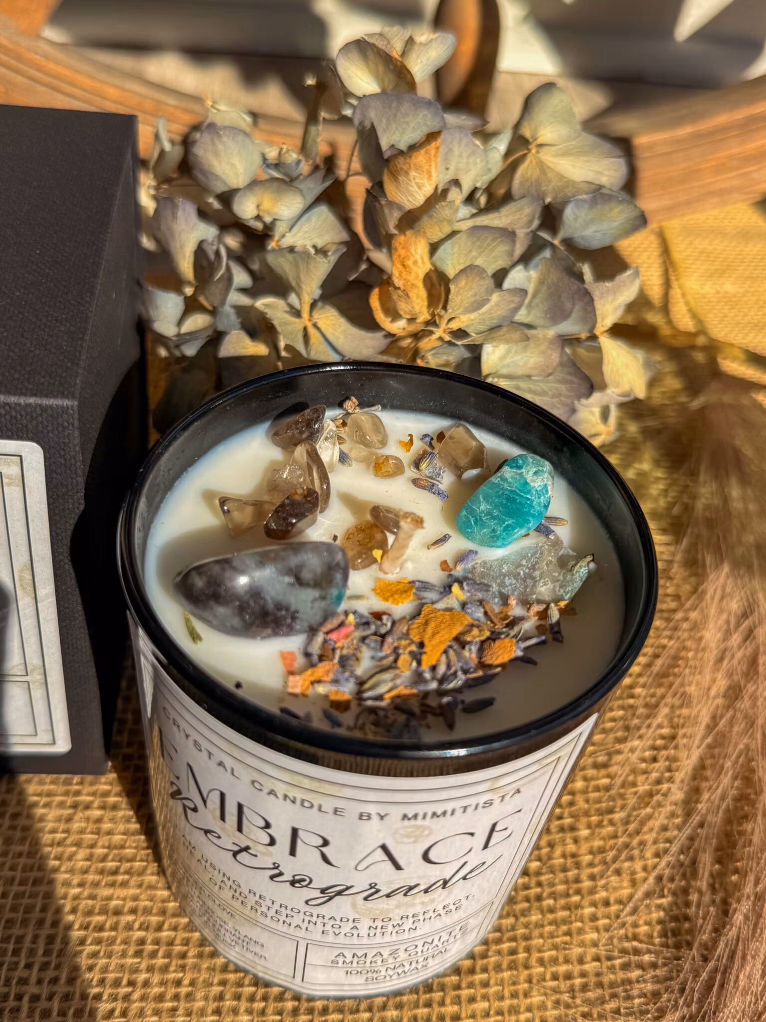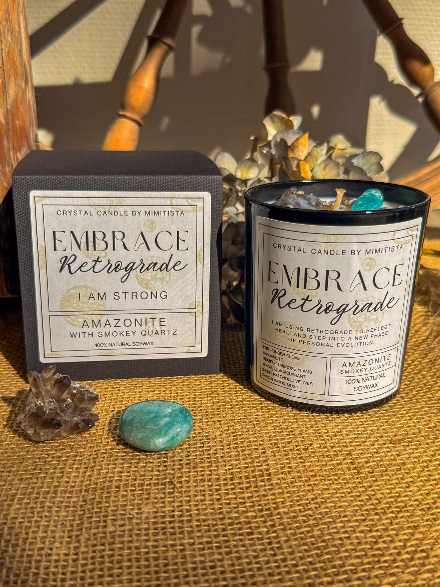 Mimitista’s ljuskollektion är fylld med kraften från kristaller och dofter, skapade för att stötta dig genom livets olika faser. Våra handgjorda ljus är veganska, gjorda av svenskt sojavax fritt från GMO, utan parabener och ftalater – och sprider en mjuk men kraftfull doft i rummet.