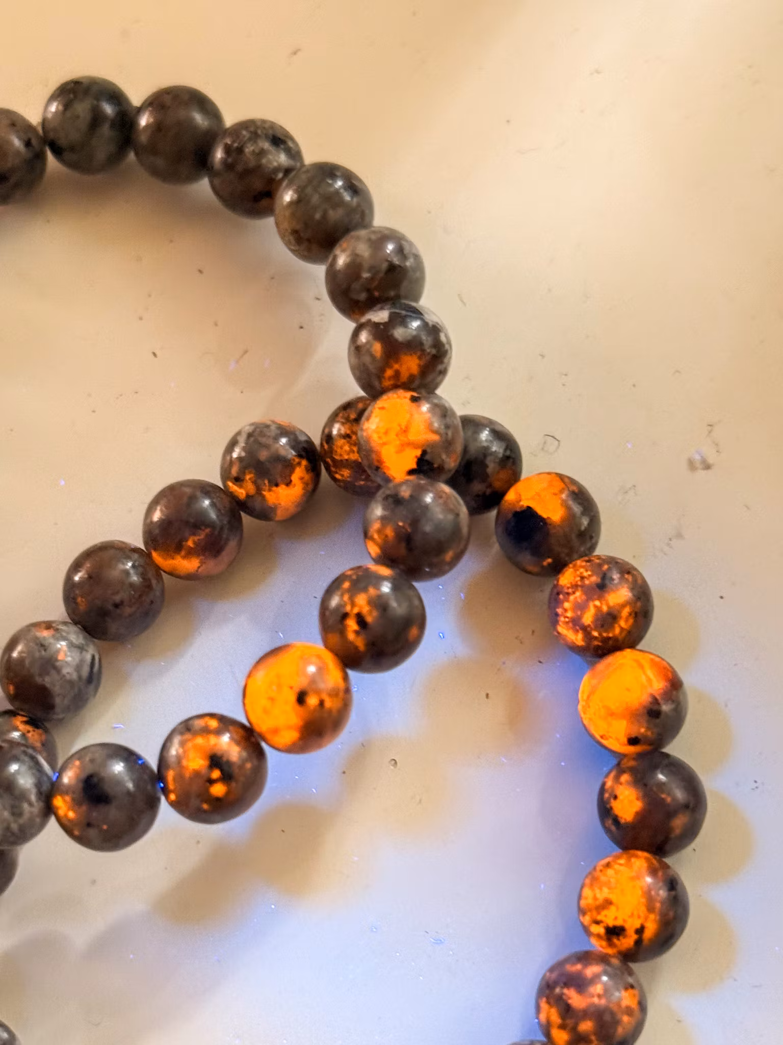 Yooperlit kommer från Lake Superior i Michigan, USA. Den består av syenit som innehåller fluorescerande sodalit. I vanligt ljus ser den ganska diskret ut, men under UV-ljus lyser den upp i starka orange och gula toner.