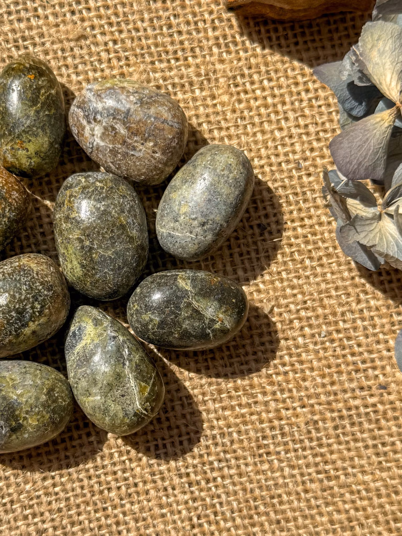 Grön opal är en sten för att läka hjärtat, speciellt efter sorg eller trauma. Den uppmuntrar oss försiktigt att återuppbygga och påminner oss om den uthållighet och styrka vi trodde att vi hade förlorat, och vår medfödda förmåga att fortsätta växa.