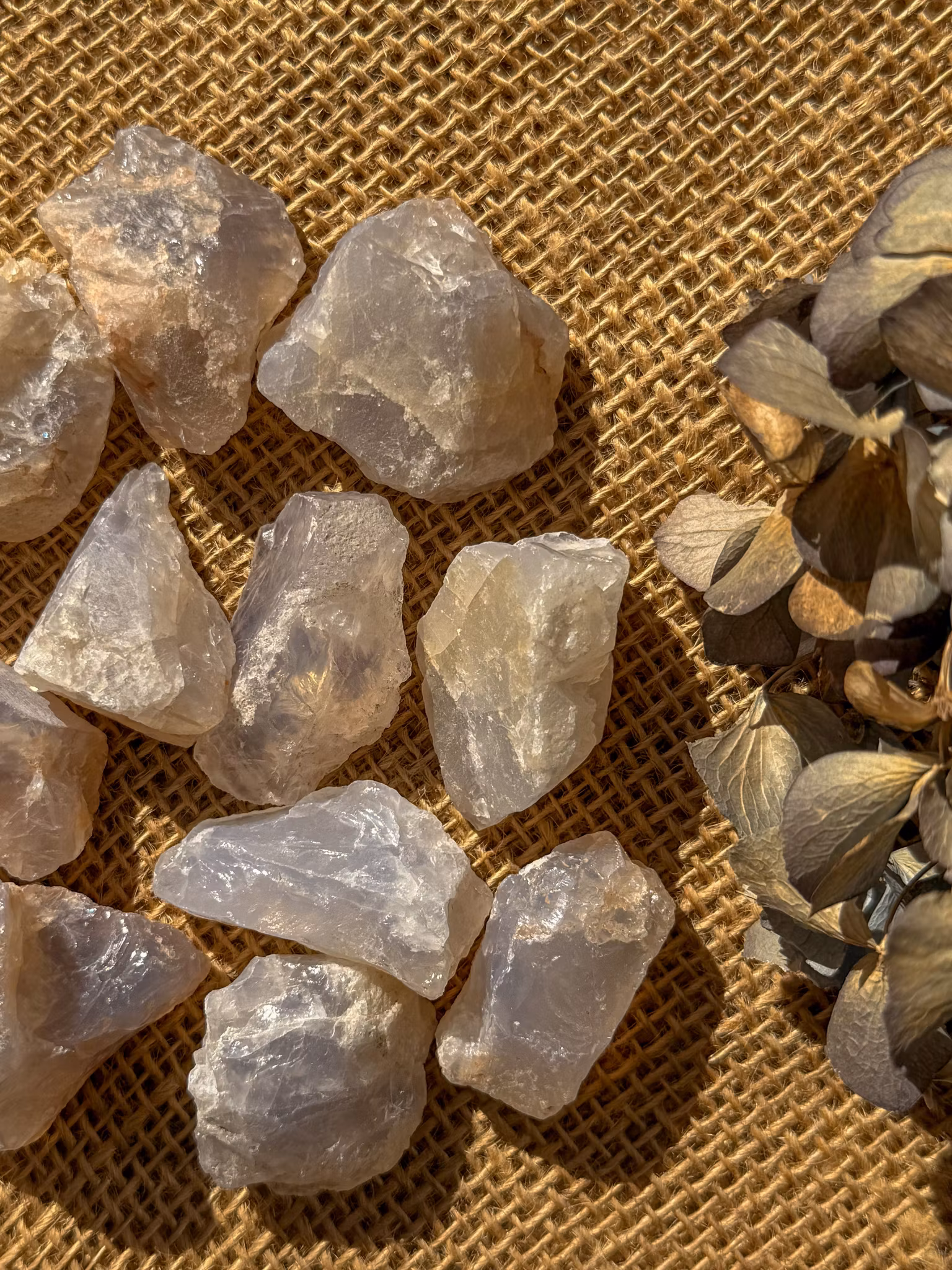 Som en blandning av skymning och gryning, bär Blå Rosenkvarts en mjuk ton av blått, rosa, lila och grått. Den är ovanlig, ibland missförstådd för många tror att den är en “sämre” variant av rosenkvarts. Men sanningen är den motsatta. Blå Rosenkvarts är en högkvalitativ kristall som förenar tre mineraler i ett: rosenkvarts, girasol och dumortierit.