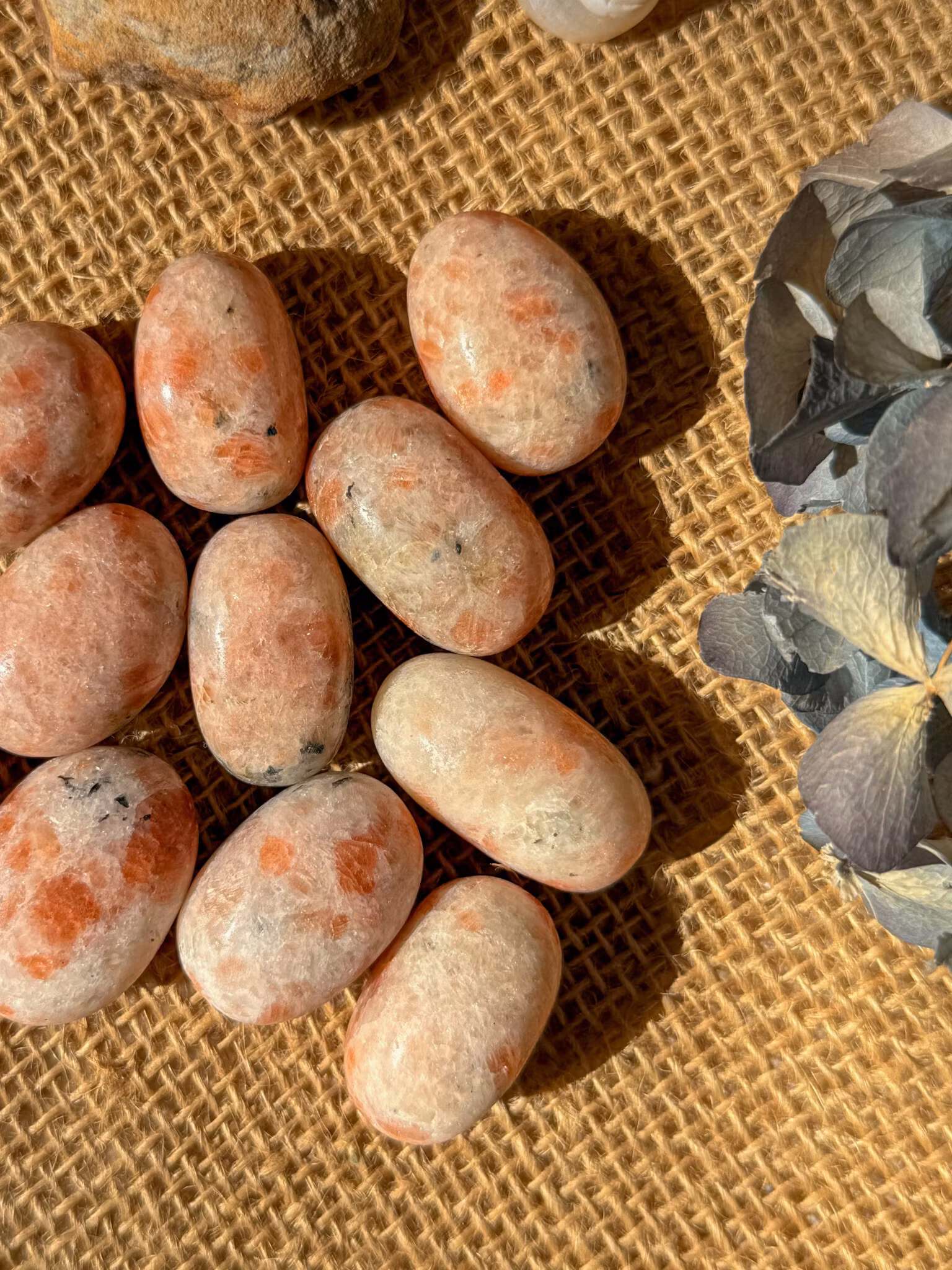 Denna kristall väcker det slumrande ljuset i dig – det som gömts bakom oro, skuld eller anpassning. Den lyfter slöjorna av självbegränsning och för tillbaka dig till ett tillstånd av inre frihet, där du får vara exakt den du är. Solsten sägs skingra rädsla, dämpa stress och mildra nedstämdhet. Den är som en andlig soluppgång för den som gått vilse i skuggorna.