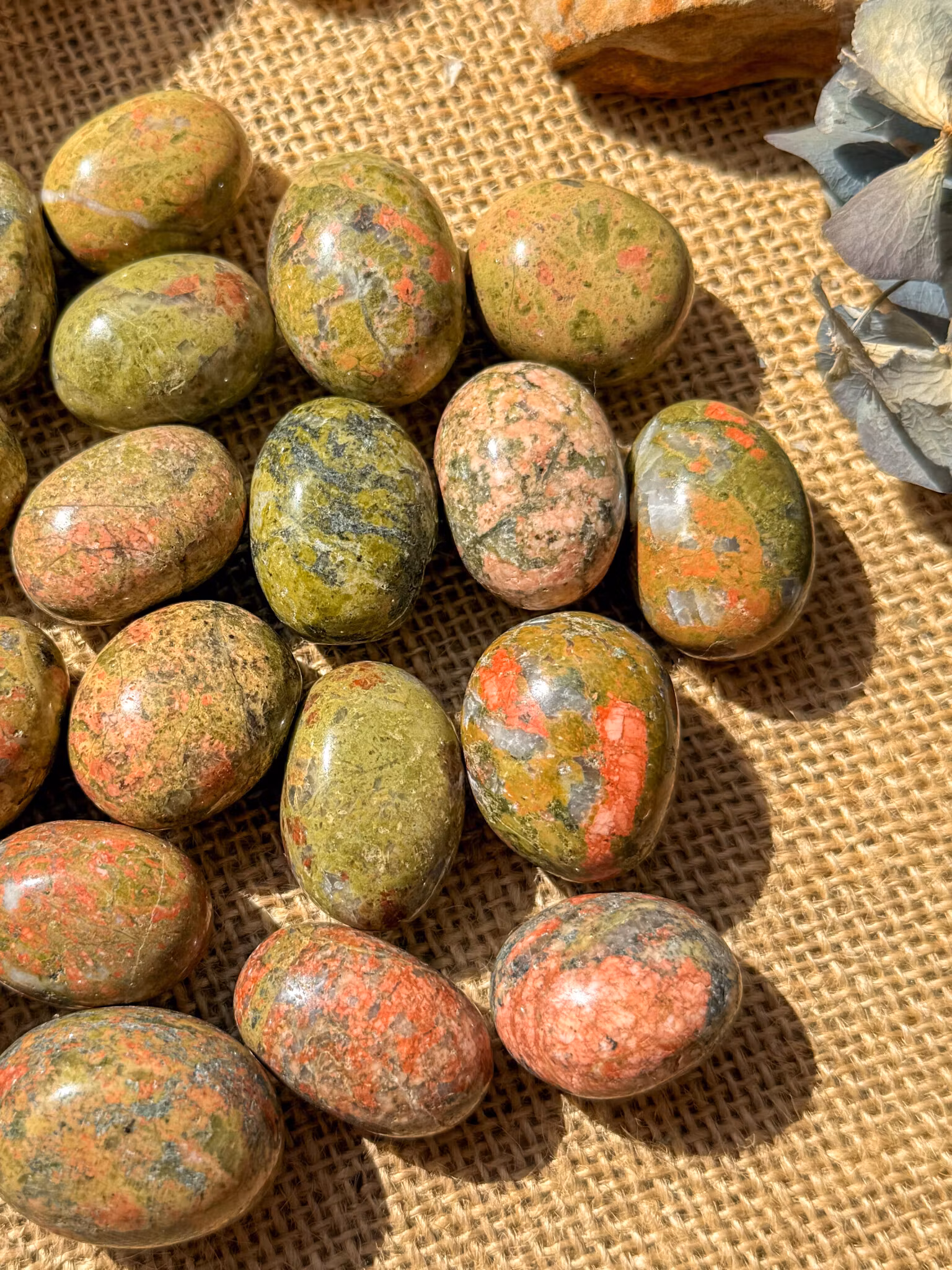 Unakit sägs vara en synsten som öppnar det tredje ögat chakra. Den tros också vara en sten av balans, som jordar jaget samtidigt som det för samman känslor och andlighet. Bland utövare av kristallläkning används unakit för att stödja återhämtning från sjukdom. Den tros också påverka reproduktionssystemet, hälsosam graviditet och tillväxten av hud och hår. Unakit är associerad med två chakran: till det tredje ögats chakra för dess användning vid syn och om man behöver tala högt. Även till hjärtchakrat för dess förmåga att balansera känslor.