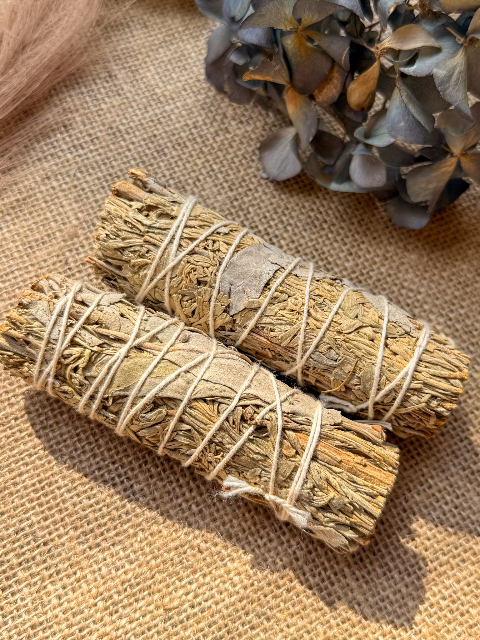 Blå salvia, även känd som mormors-salvia har en mjukare men ändå kraftfull energi som stödjer manifestation och inre visdom. Den hjälper till att släppa mentala blockeringar och skapar en klar väg för framgång och personlig utveckling. Tillsammans med vit salvia skapar den en ritualisk blandning som inte bara renar utan också attraherar nya möjligheter och ekonomiskt flöde.