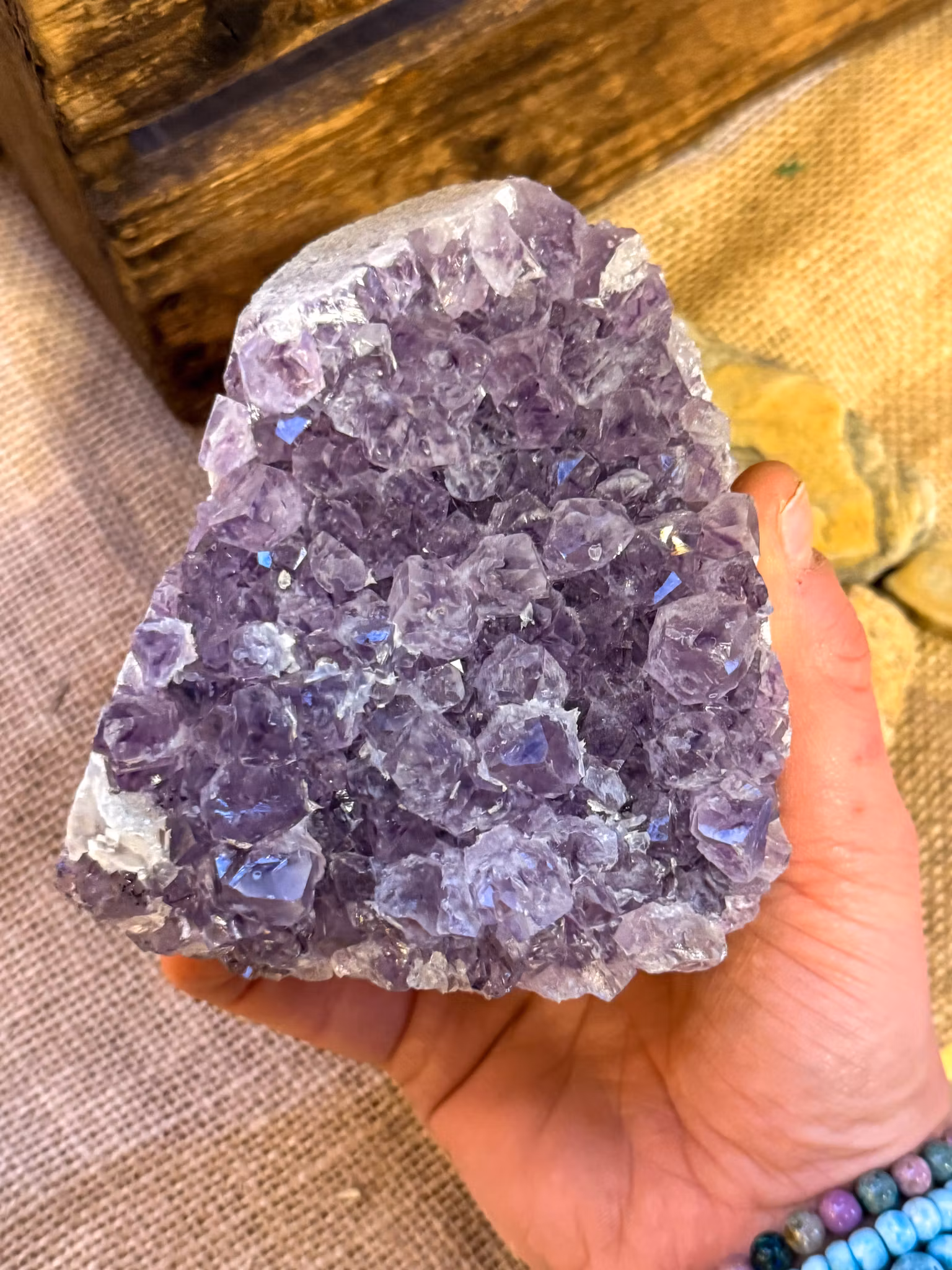 För många är ametist nyckeln till att stärka kontakten med sitt tredje öga – den punkt där insikt, drömmar och själslig vägledning möts. Denna kristall används ofta i meditation och andligt arbete för att rena sinnet, skärpa medvetenheten och fördjupa tilliten till den egna inre rösten. Den påminner om att svaren du söker inte alltid finns utanför dig – ibland handlar det bara om att stilla sig tillräckligt länge för att höra dem inifrån.