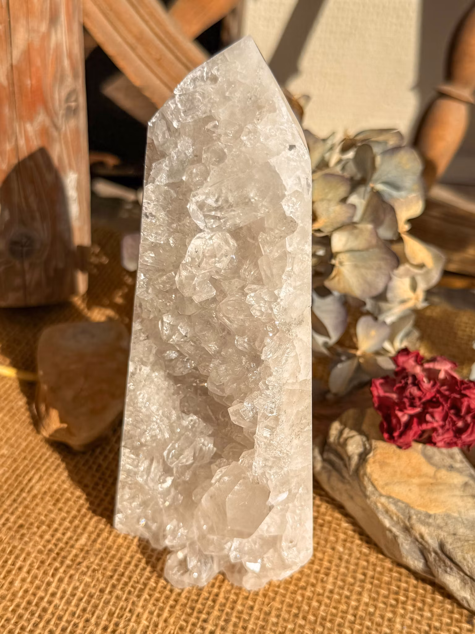 Det är också en av få kristaller som inte bara sänder ut energi – utan som också drar till sig och lagrar den. Därför är regelbunden rening viktig, särskilt om du använder den i ceremoni, healing eller vid transformation. Se den som en allierad som förstärker både din intention och andra kristallers budskap – oavsett om du jobbar med ametist, rosenkvarts eller något helt annat.