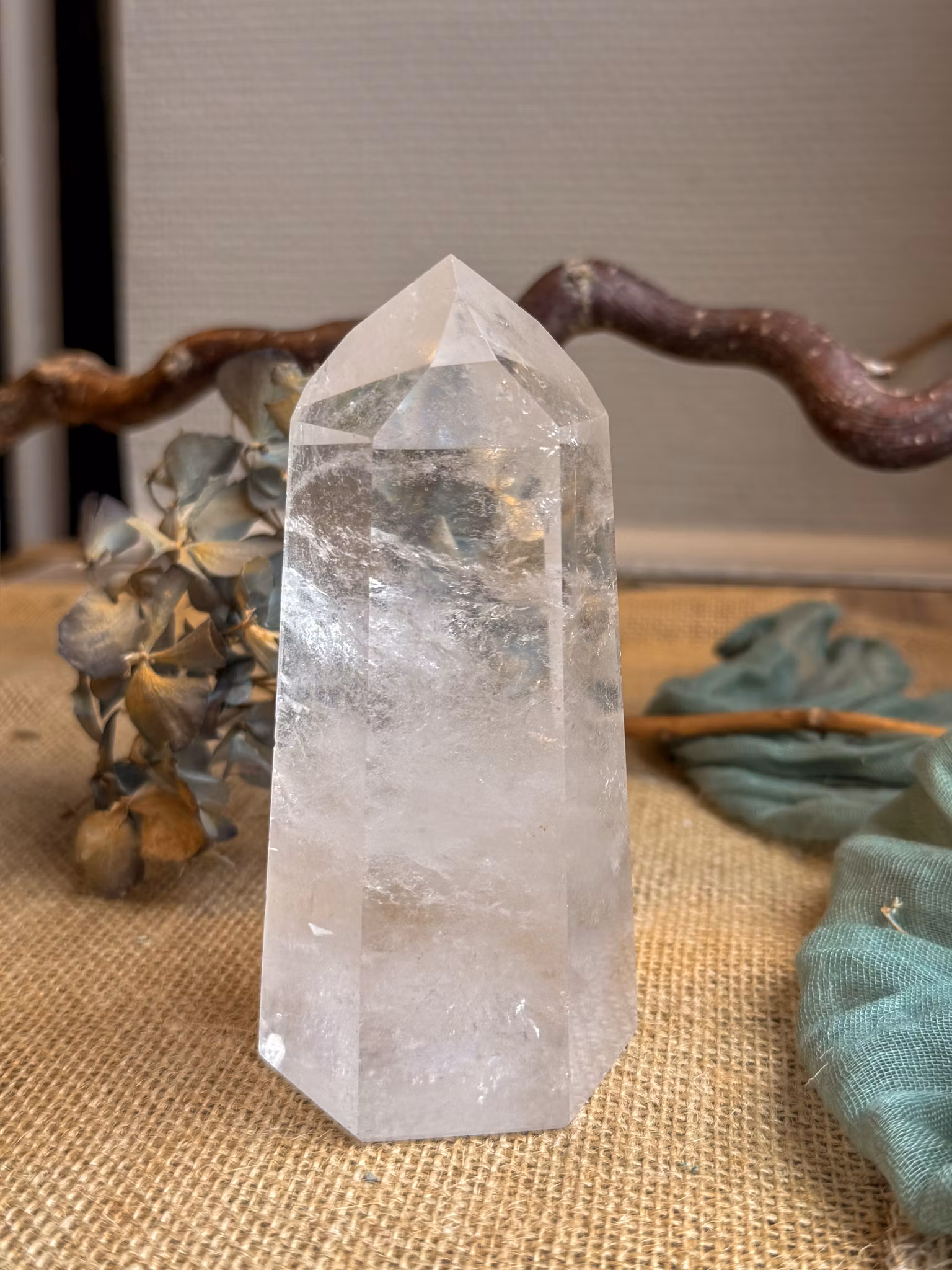Bergskristall bär på något evigt. Den är ren som is, men aldrig kall – snarare lysande som en inre fackla som påminner dig om vem du är bortom brus, oro och självtvivel. Den är både början och förstärkare, en kristall som inte tar plats men samtidigt håller hela rummet. Med sitt ljus bjuder den in till sanning, närvaro och kontakt med något större än oss själva.