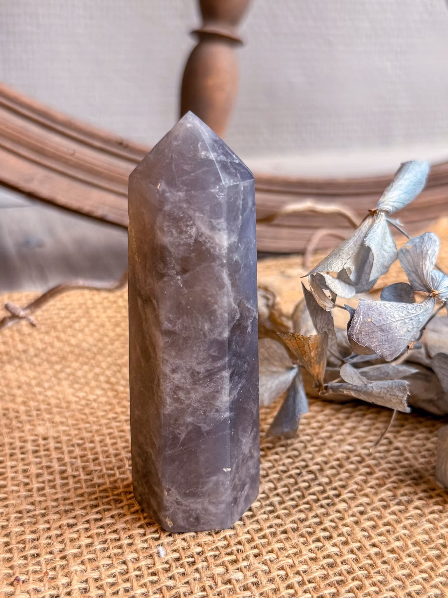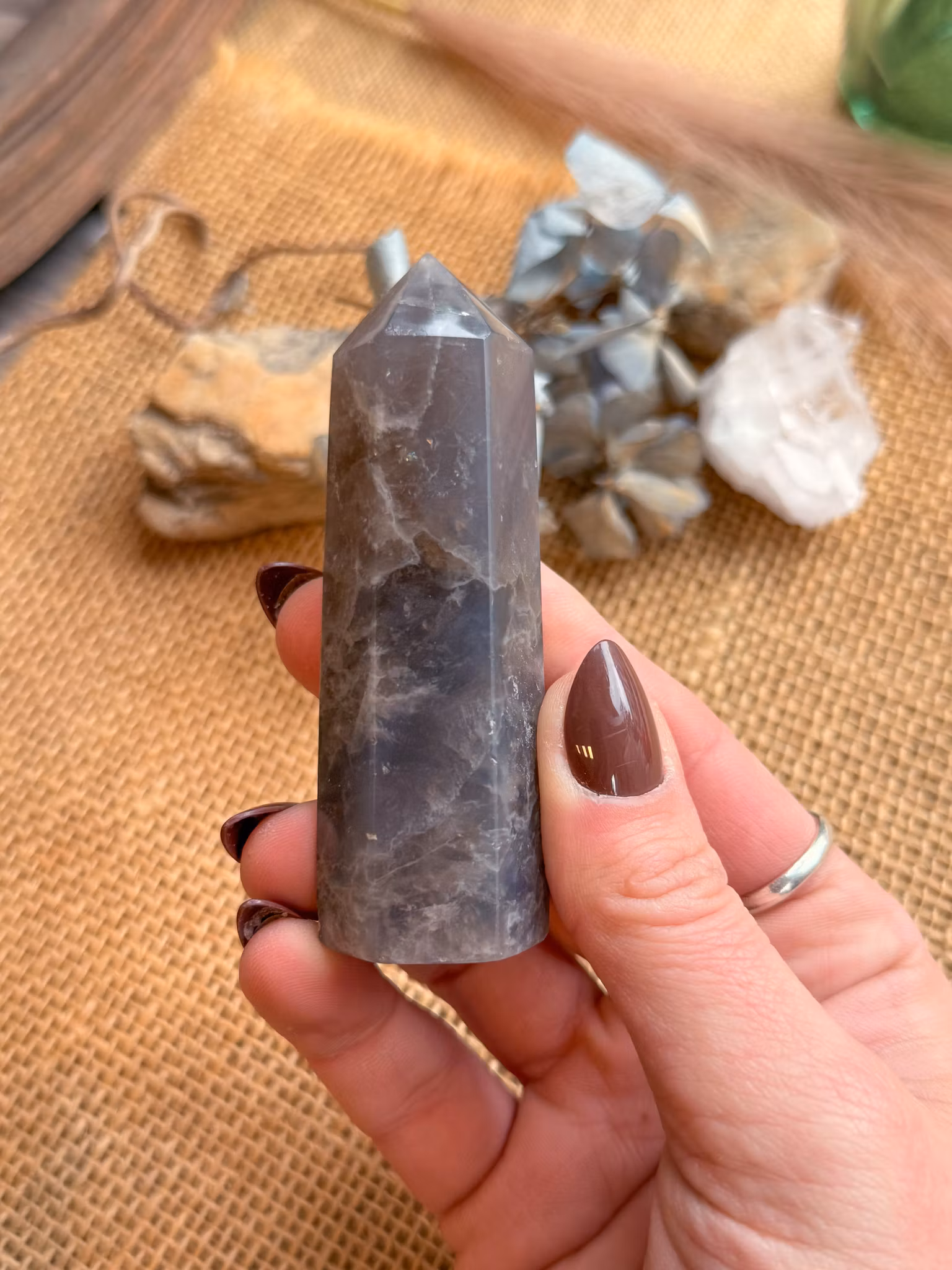 Blå Rosenkvarts bär en mjuk ton av blått, rosa, lila och grått. Den är ovanlig, ibland missförstådd för många tror att den är en “sämre” variant av rosenkvarts. Men sanningen är den motsatta. Blå Rosenkvarts är en högkvalitativ kristall som förenar tre mineraler i ett: rosenkvarts, girasol och dumortierit.