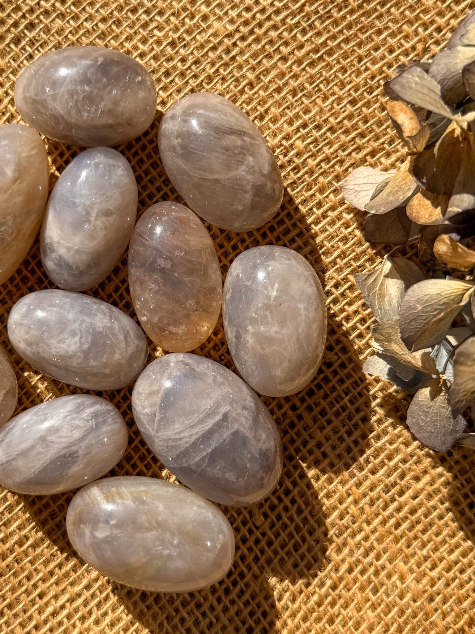 Som en blandning av skymning och gryning, bär Blå Rosenkvarts en mjuk ton av blått, rosa, lila och grått. Den är ovanlig, ibland missförstådd för många tror att den är en “sämre” variant av rosenkvarts. Men sanningen är den motsatta. Blå Rosenkvarts är en högkvalitativ kristall som förenar tre mineraler i ett: rosenkvarts, girasol och dumortierit.