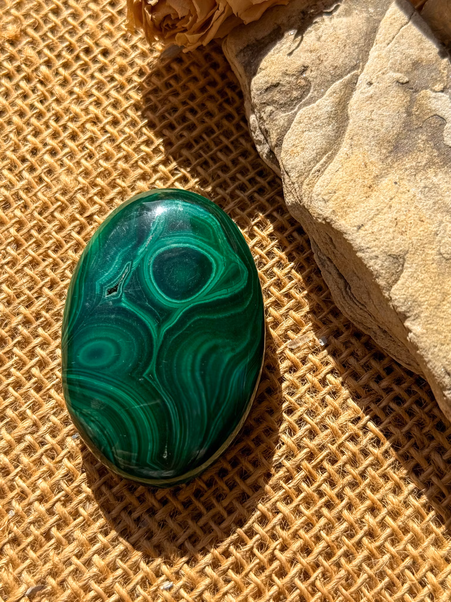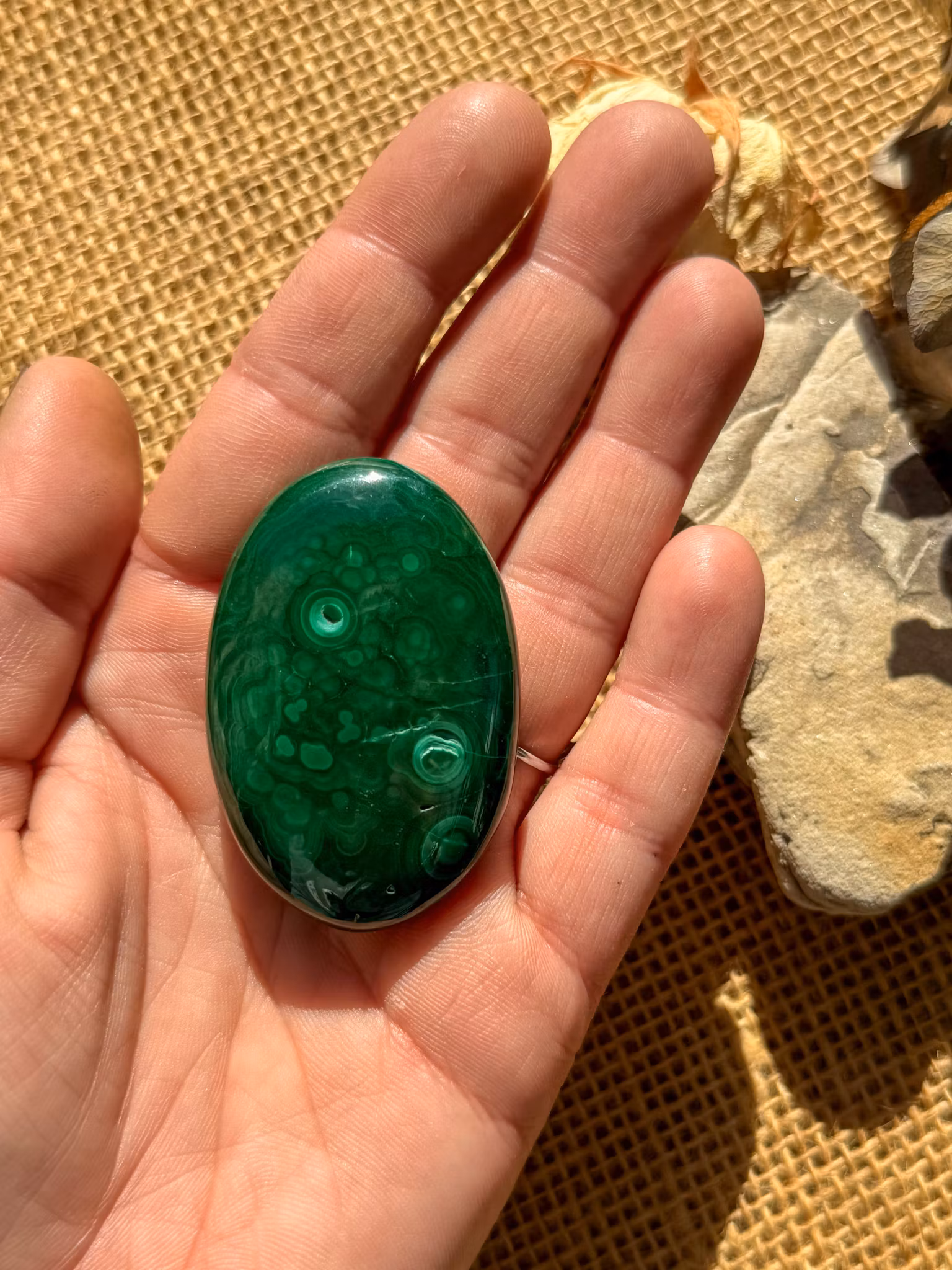 Varje virvlande mönster är naturens egen konst, en ständig dans mellan ljus och djup. Malakit är en stark transformator som skyddar, avslöjar blockeringar och hjälper dig bryta gamla mönster. Den öppnar hjärtat för kärlek och väcker mod, styrka och flöde i ditt liv. Till skillnad från Moldavit, som kan kännas explosiv och överväldigande, bär Malakit en mer jordad och balanserad energi – lika kraftfull, men på ett tryggare sätt.