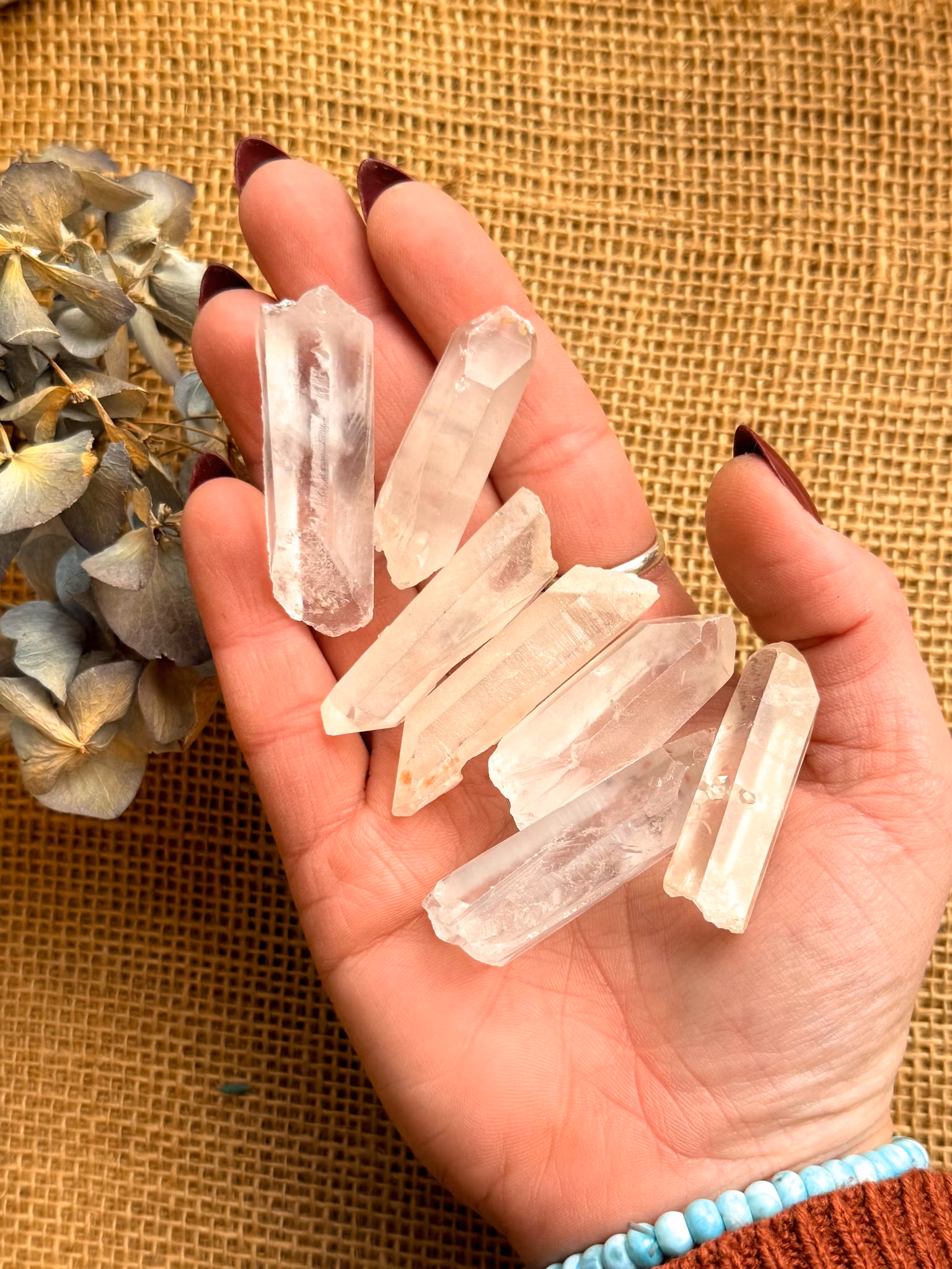 Lemuriankvarts känns som ett rent ljus som rör sig genom kroppen. Den är en form av klar kvarts och känns igen på de horisontella, stegliknande ränderna längs sidorna. Dessa linjer bildas under kristallens egen tillväxt, när olika lager lägger sig i skikt, och det är just dessa naturliga markeringar som gett den sitt namn. Många menar att ränderna fungerar som små energikoder, en symbolisk länk till den mytiska civilisationen Lemurien och dess idé om visdom, intuition och kosmiskt samhörighet.