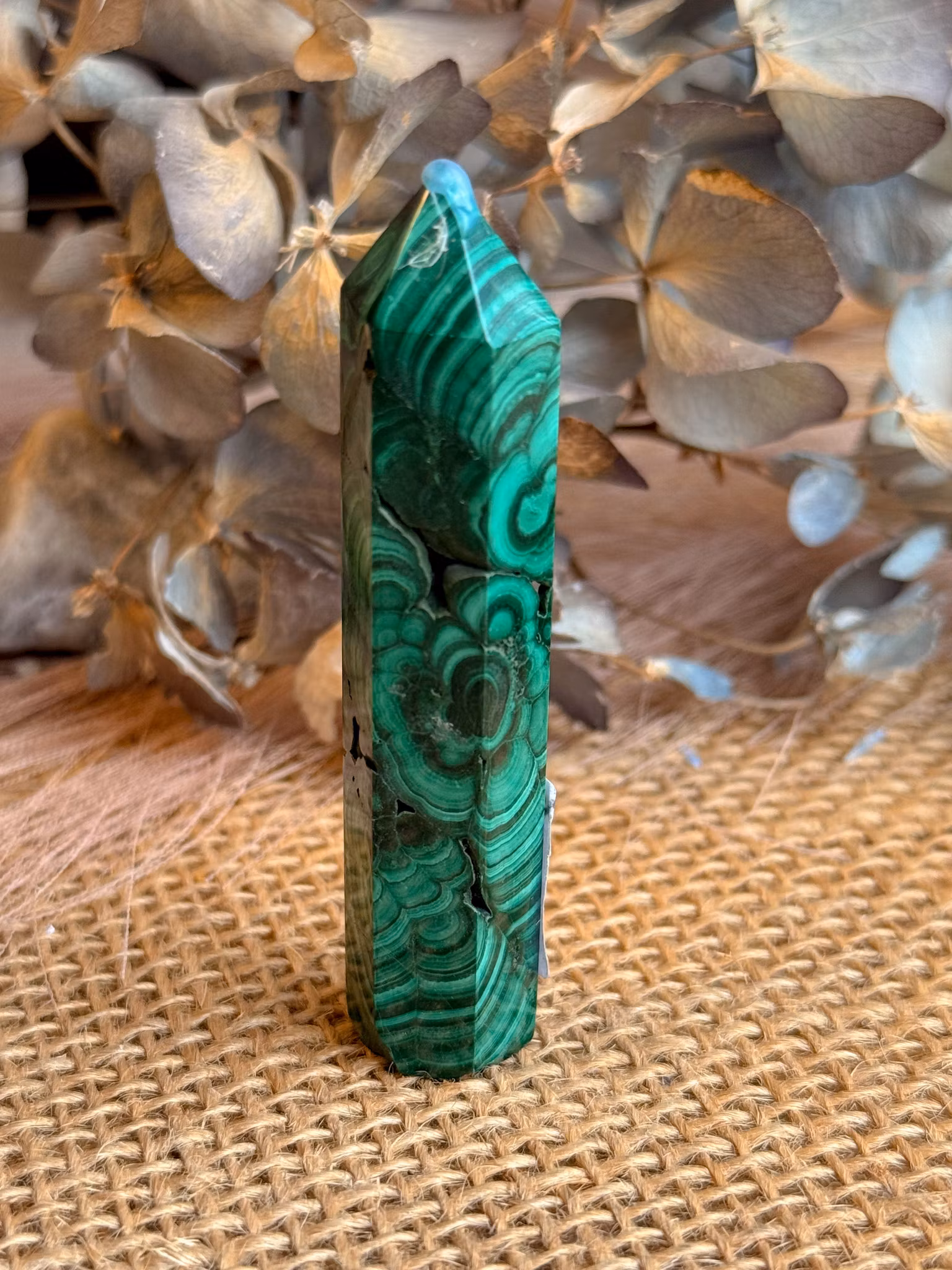 Malakit är också känd som en av de starkaste hjärtöppnarna. Den hjälper dig läka gamla kärlekssår, släppa smärtsamma minnen och våga ta emot ny kärlek. Den uppmuntrar känslomässig ärlighet, stärker empati och lär dig ta ansvar för dina egna tankar och handlingar. Den ger styrka att övervinna rädslor, stå i din sanning och skapa relationer byggda på kärlek snarare än behov.