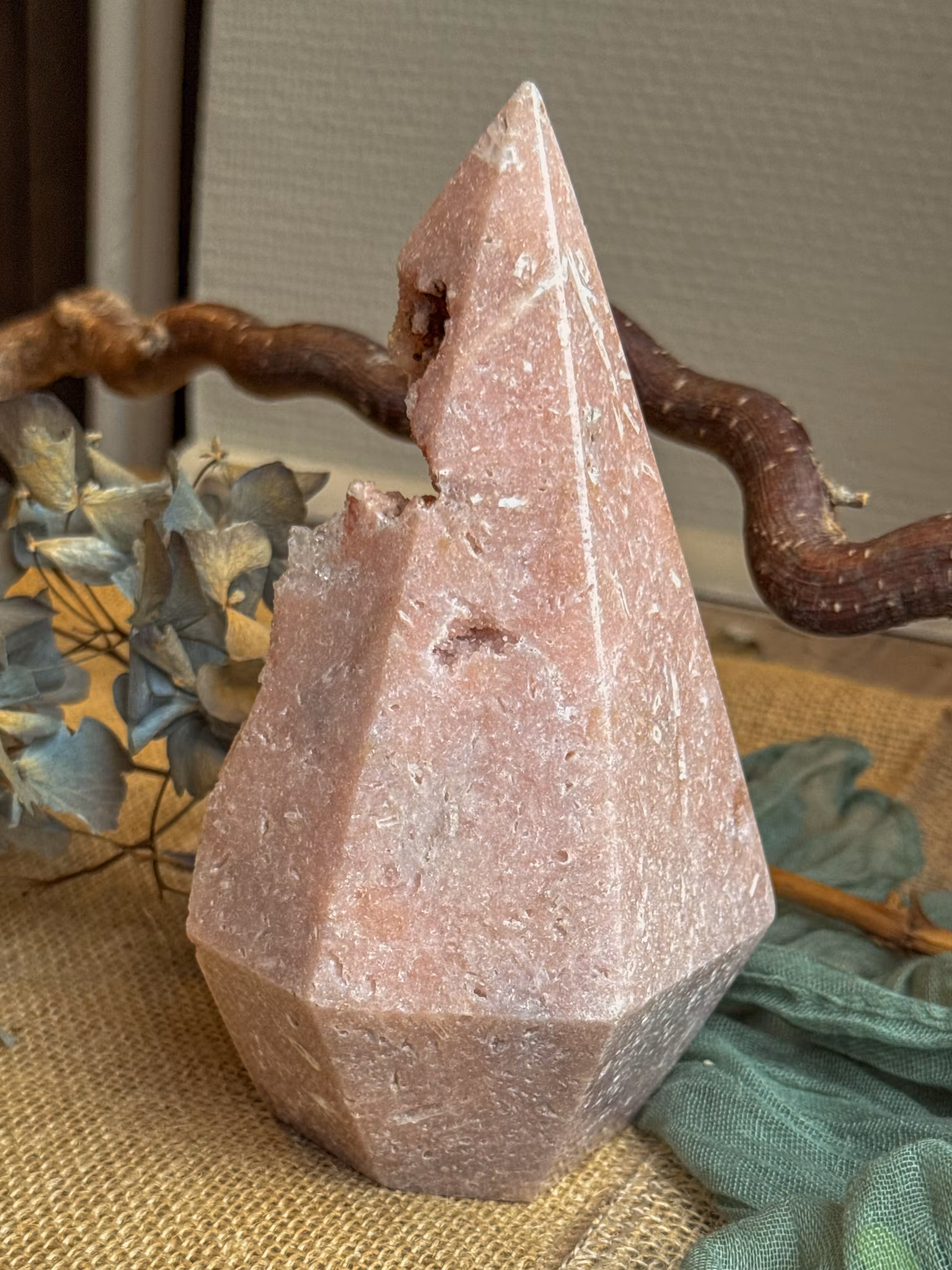Rosa ametist passar vid meditation, vid sängen eller när du behöver en trygg punkt att förlita dig på. Den för in stillhet där det varit oro och hjälper hjärtat hitta sin egen rytm igen.