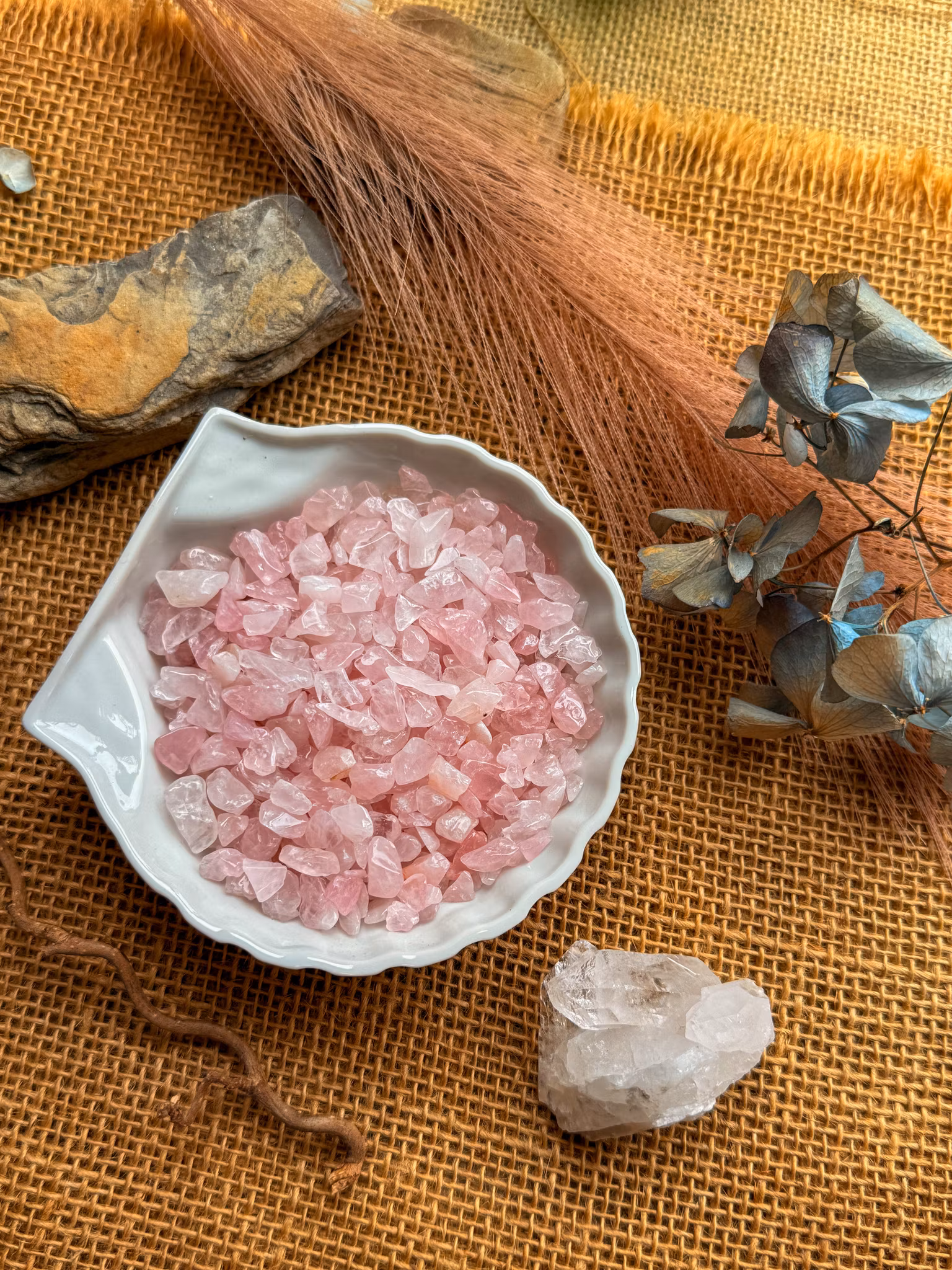 Kristallchips är perfekta när du vill sprida energi på ett mjukt och naturligt sätt. Strö dem runt ljus, i växter eller badvatten, skapa små kristallnät eller låt dem vila i en skål som dekor. Kristallchips bär samma energi som sina större former och påminner om att även det lilla kan bära stor kraft. Ett enkelt och vackert sätt att låta din intention flöda fritt i hemmet.